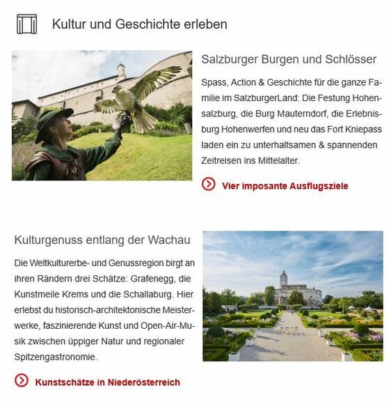Präsentation Ihrer Botschaft im thematisch passenden Umfeld auf dem offiziellen Tourismusportal Österreichs
