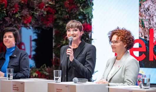 v.l.n.r.: Karin Seiler (Geschäftsführerin Tirol Werbung & Sprecherin der Landestourismusorganisationen), Astrid Steharnig-Staudinger (Geschäftsführerin Österreich Werbung) und Elisabeth Zehetner (Tourismus-Staatssekretärin im Bundesministerium für Wirtschaft, Energie und Tourismus); (c) ÖW/Philipp Gaiko